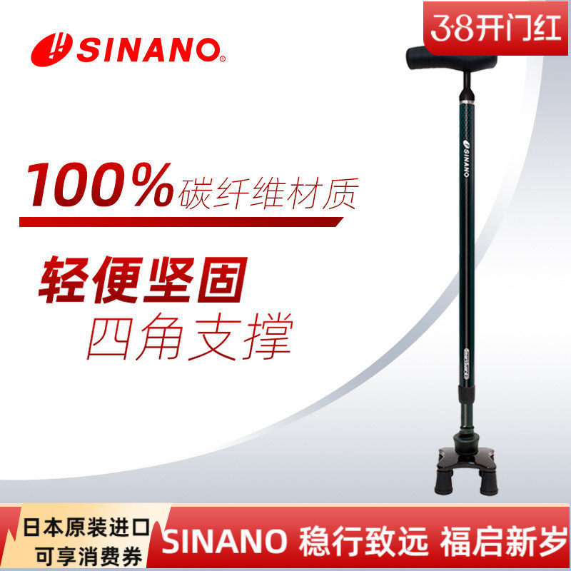 日本品牌SINANO高端碳纤维伸缩拐杖万向防滑超轻稳固老年四脚拐棍