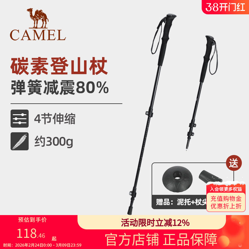 骆驼登山杖全碳素轻便伸缩拐杖多功能专业户外男女徒步登山装备全
