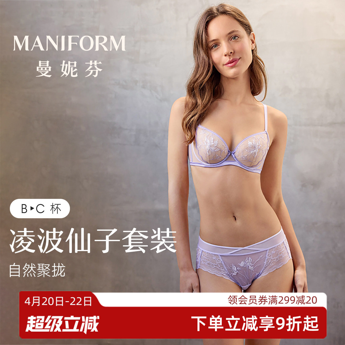【B-C杯套装】曼妮芬性感蕾丝刺绣文胸女舒适软钢圈聚拢法式内衣