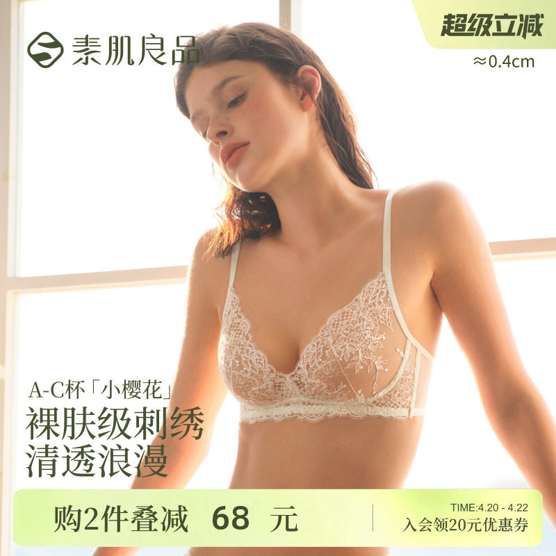 Socialloner内衣女小胸聚拢薄款性感纯欲刺绣网纱软钢圈文胸套装