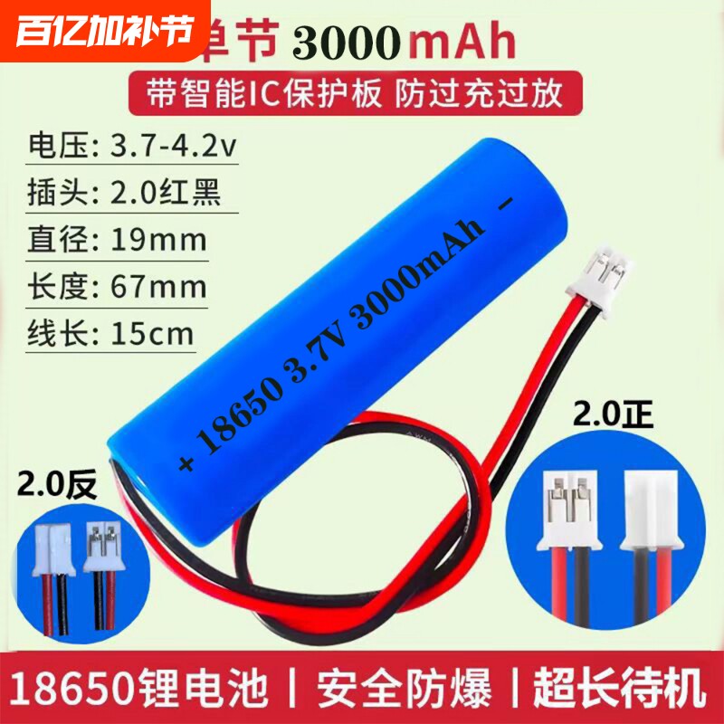 3.7V带线18650锂电池7.4V太阳能灯音响报警器头灯强光手电筒收音机小风扇扩音器14500电池大容量充电音箱平头