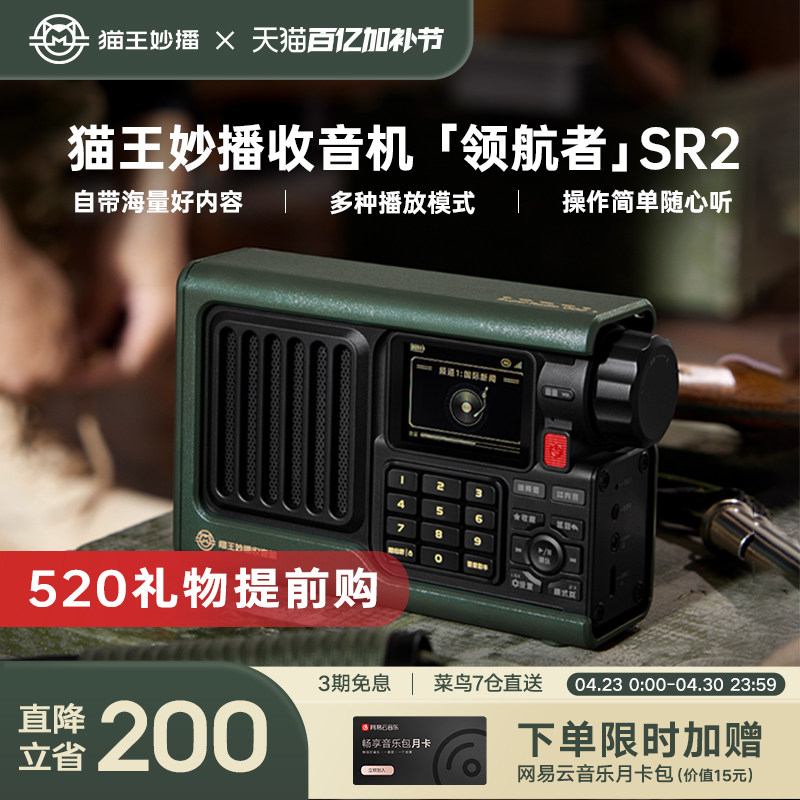 猫王妙播音响收音机领航者SR2网络便携老人插卡wifi蓝牙音响带屏