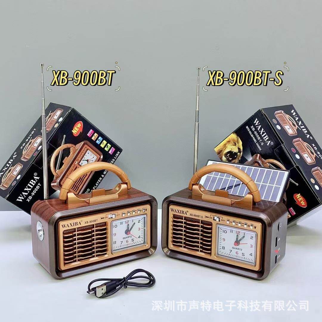 新款复古太阳能户外手电筒便携手提带时钟家用天线收音机蓝牙音响