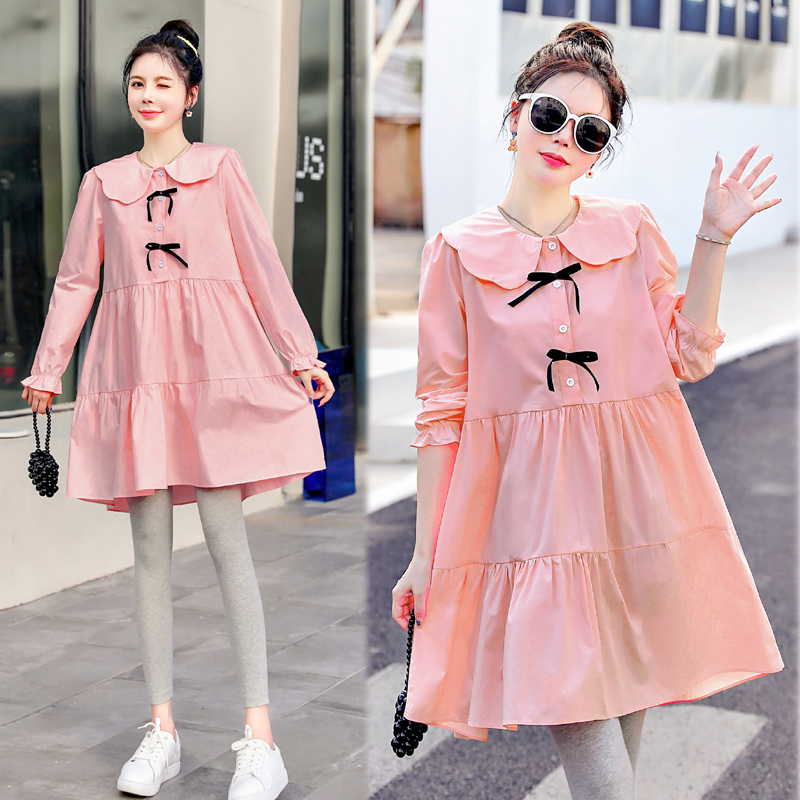 新款网红孕妇春装套装春秋款长袖大码衬衫连衣R裙中长款棉麻A字裙