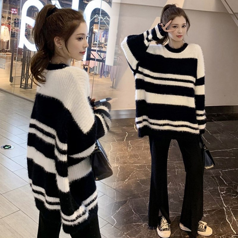 卫衣女款孕妇春装套装中长款宽松条纹T恤长袖遮屁股上衣外穿春夏