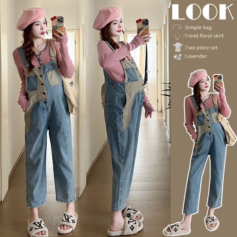 孕妇春装套装2024新款春款打底衫时尚牛仔宽松背带裤洋气时髦冬装