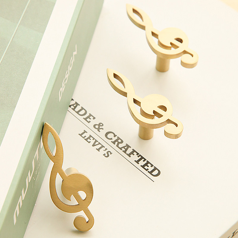 简约轻奢卡通可爱音符黄铜拉手柜门衣柜橱柜门把手抽屉鞋柜小手柄