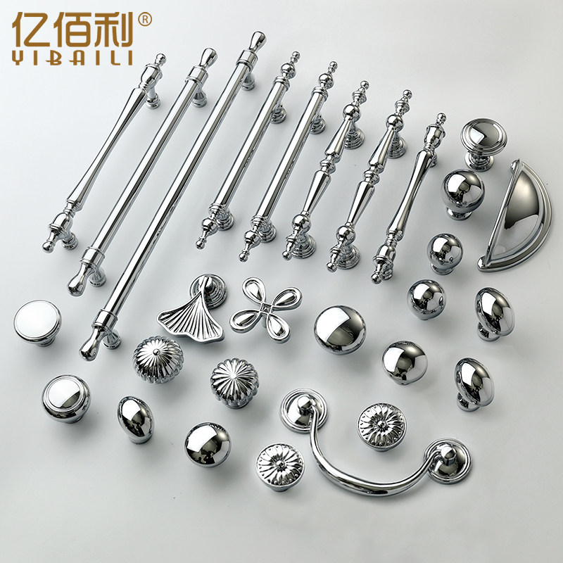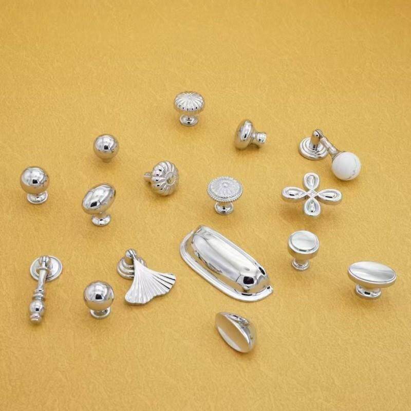 意式法式中古风镀铬亮银拉手柜门衣柜橱柜抽屉极简柜子单孔小把手