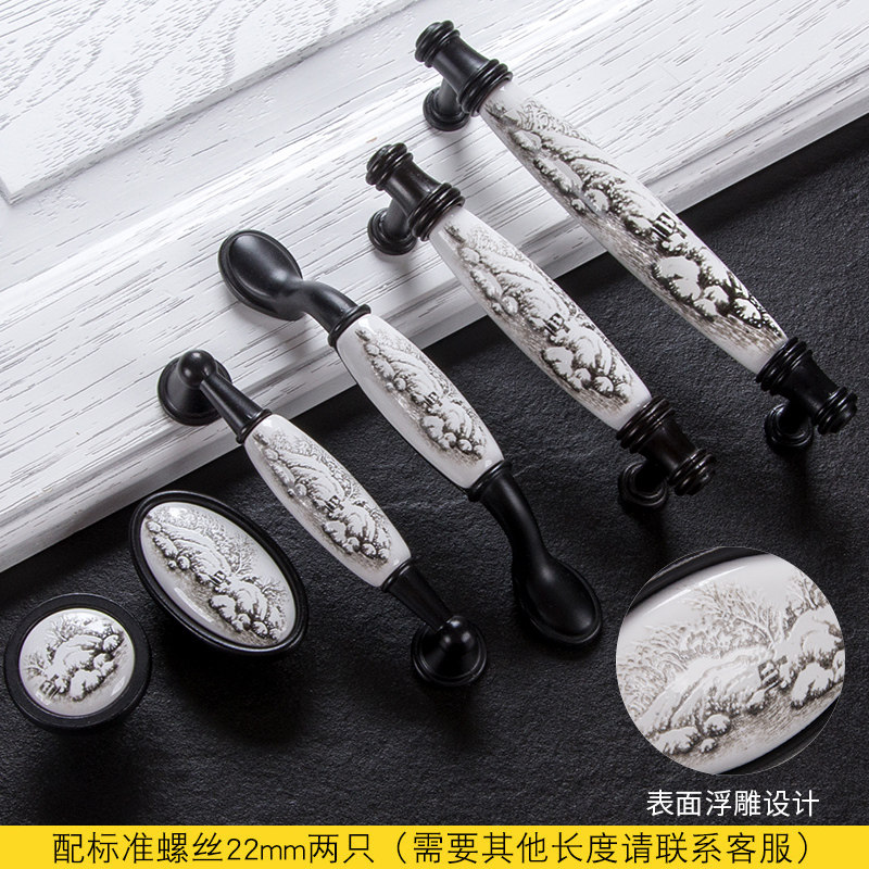 玛德堡中式拉手黑色新中式简约陶瓷抽屉小拉手柜门衣柜门橱柜把手