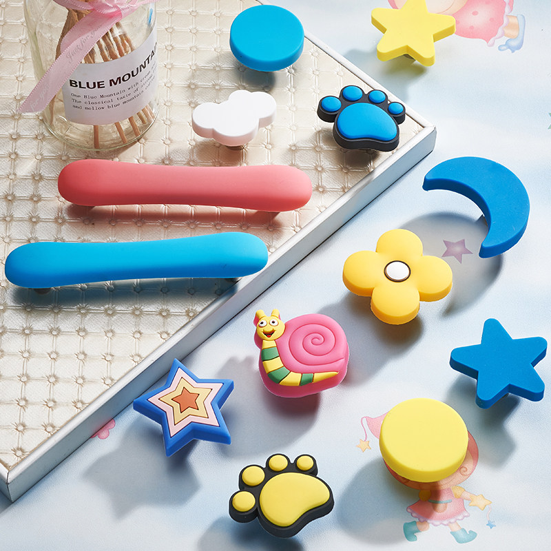 卡通防撞拉手儿童房拉手柜门衣柜现代简约明装屉把手单孔卡通硅胶
