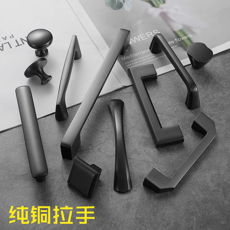 黄铜拉手柜门衣柜橱柜枪灰色门把手简约美式柜子抽屉纯铜拉手高档