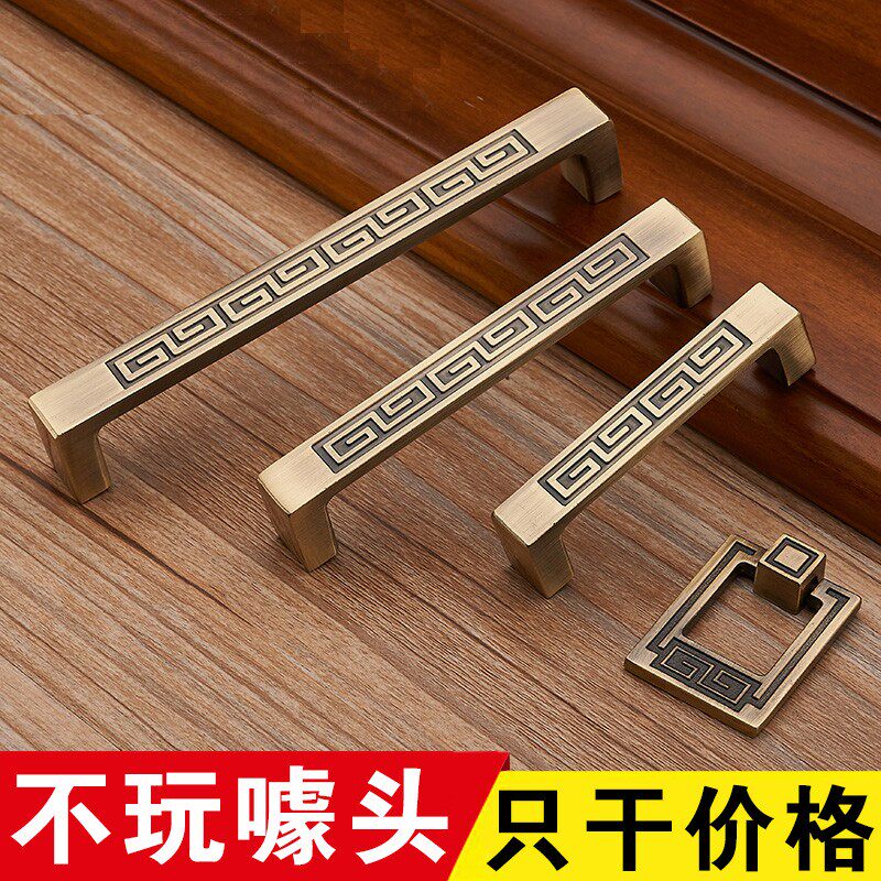 睿高 纯铜新中式拉手柜门衣柜橱柜门把手柜子黄铜仿古抽屉小拉手