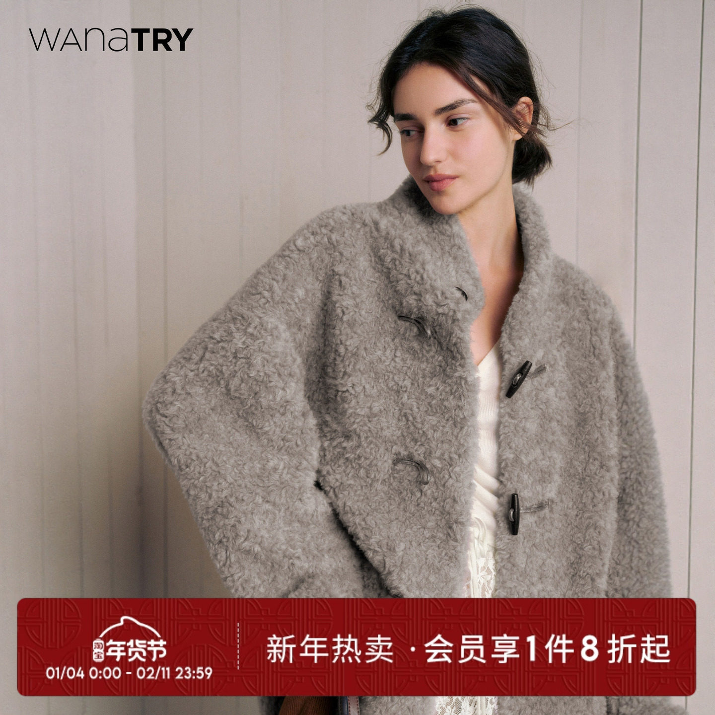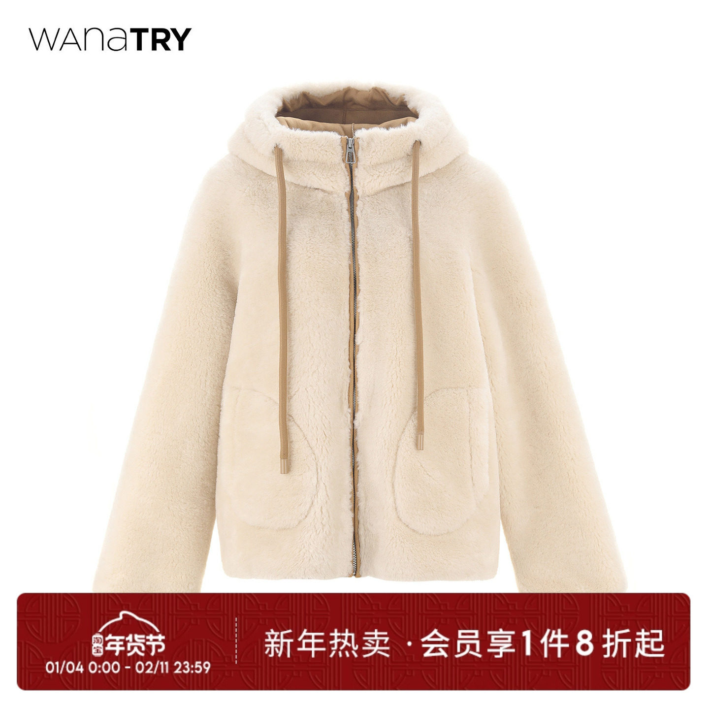 【明星同款】wana try100%绵羊毛复合皮毛一体外套25冬新款女装