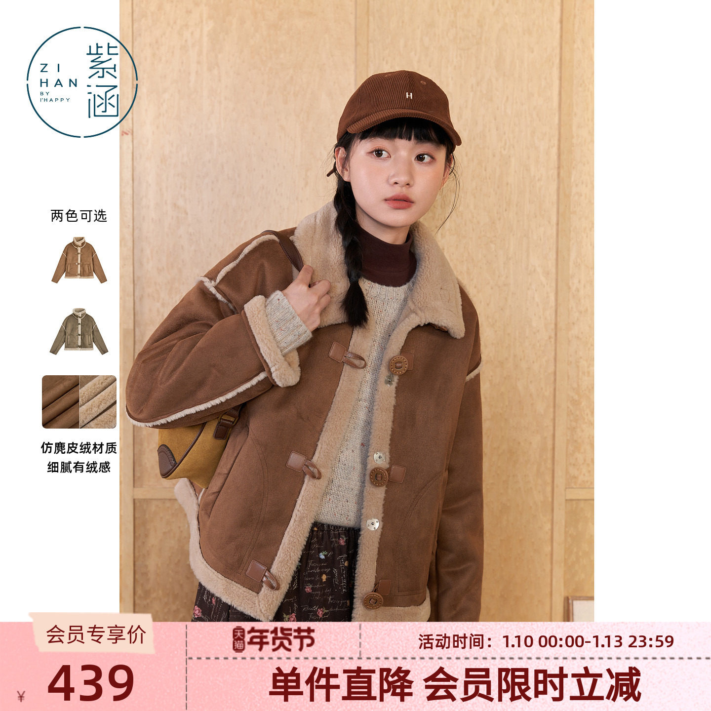 【明星同款】紫涵美拉德麂皮绒外套女冬季新款工装休闲夹克上衣潮