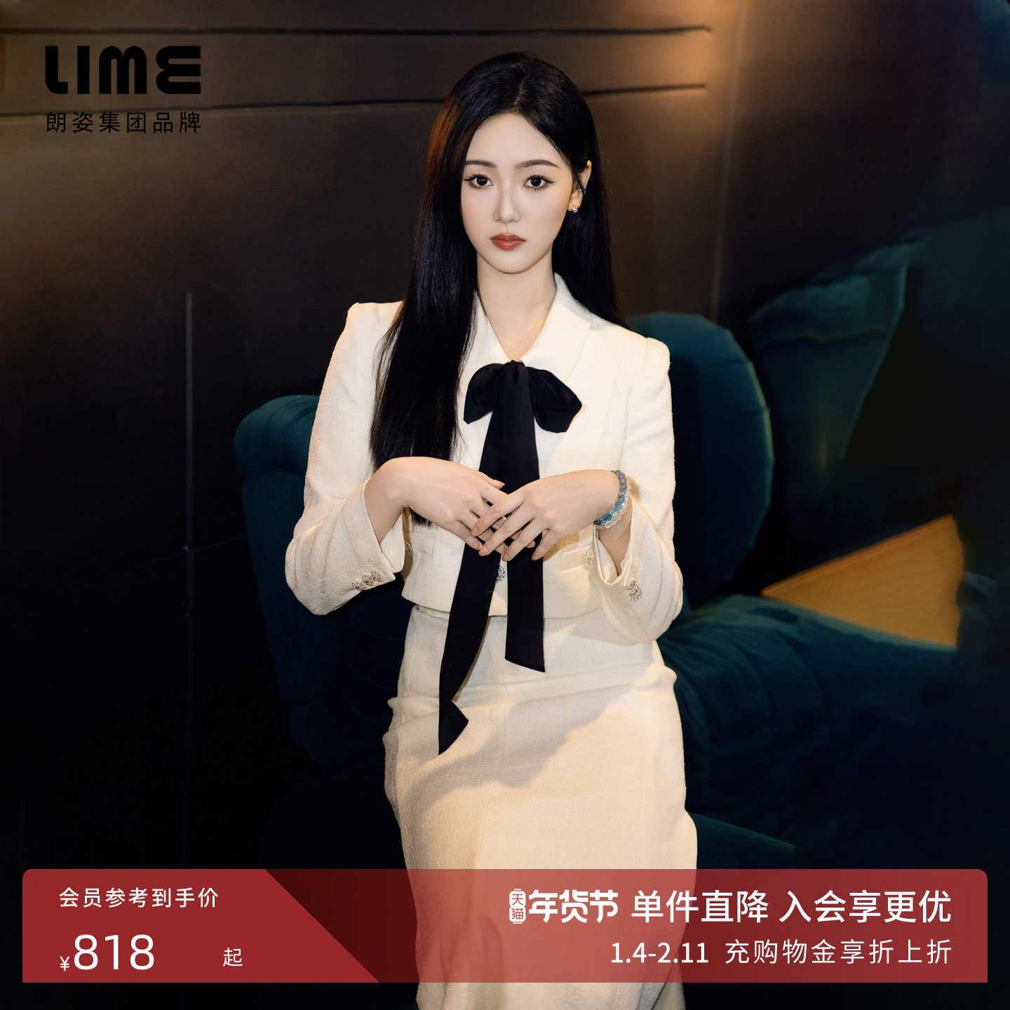 【明星同款】朗姿/LIME莱茵小香风撞色飘带外套上衣配鱼尾裙套装