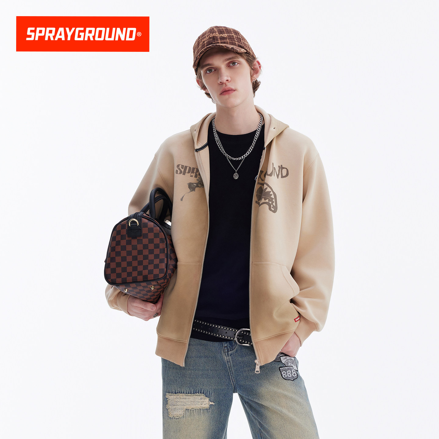 SprayGround鲨鱼嘴明星同款开衫卫衣外套男做旧水洗宽松上衣