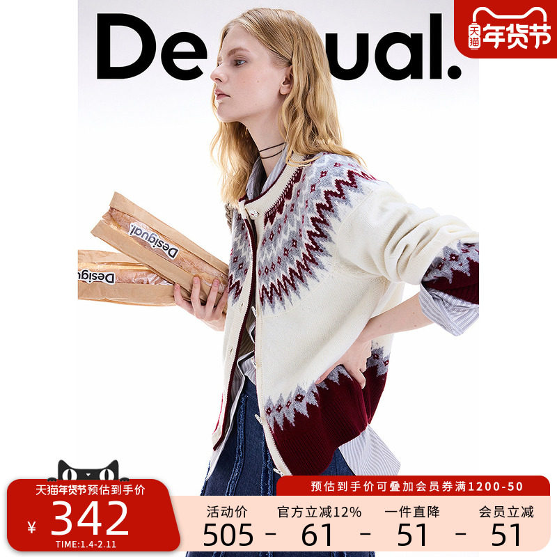 Desigual【明星同款】25秋冬新品羊毛费尔岛提花开衫女士针织衫