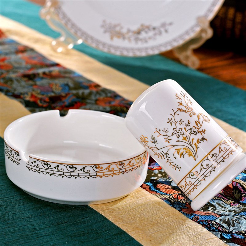 碗碟套装 家用欧式简约金边56头骨瓷餐具套装 景德镇陶瓷碗盘整套