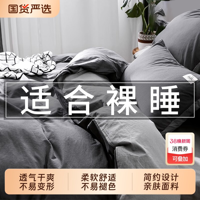 南极人纯棉水洗棉床上四件套全棉2025新款床单被罩被套床笠三件套
