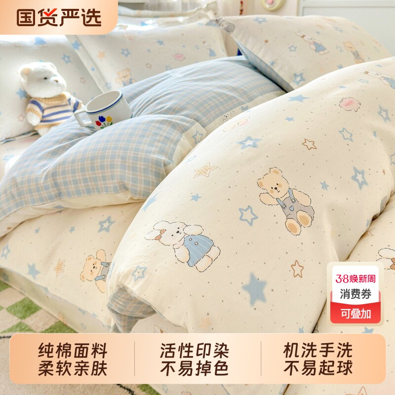 南极人ins纯棉床上四件套100全棉卡通床品床单被套学生宿舍三件套