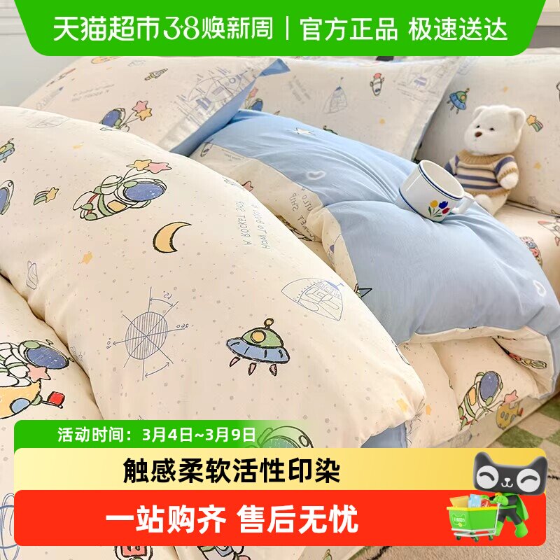 南极人卡通全棉被套四件套儿童床单单件150x200x230新款纯棉被罩