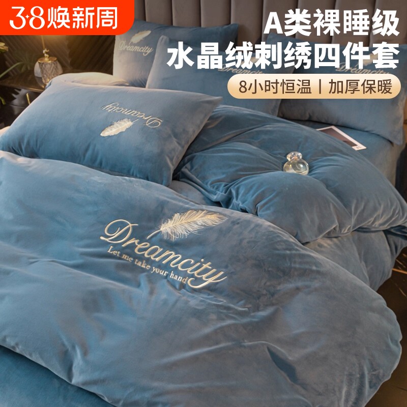 南极人水晶绒床上四件套秋冬季牛奶绒加绒双面床单被套床品三件套