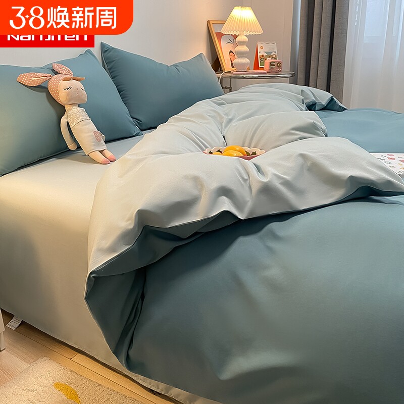 南极人四件套北欧风水洗棉被套网红款床单学生宿舍三件套床上用品