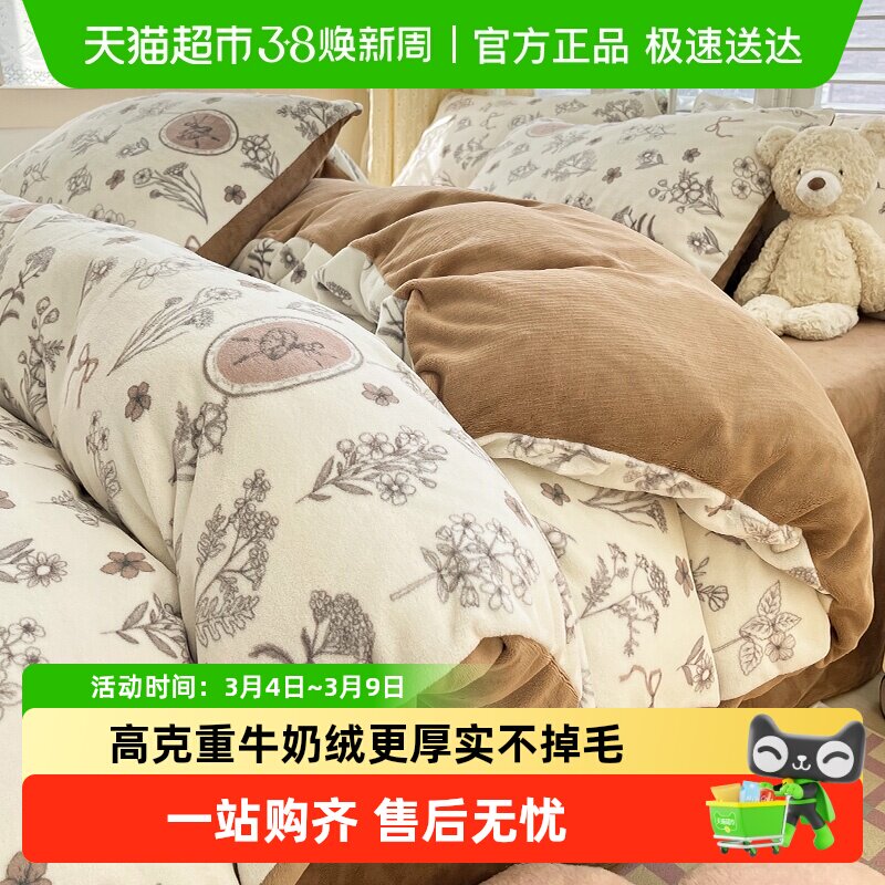南极人加厚牛奶绒床上四件套珊瑚绒加绒被套2025新款冬床单三件套