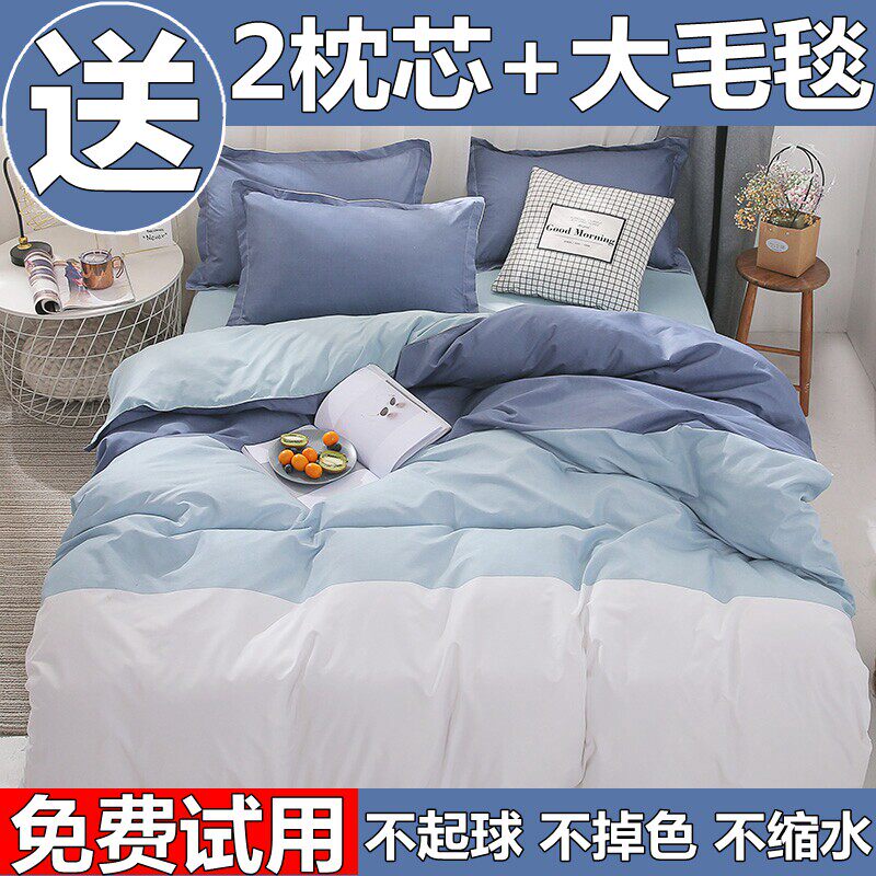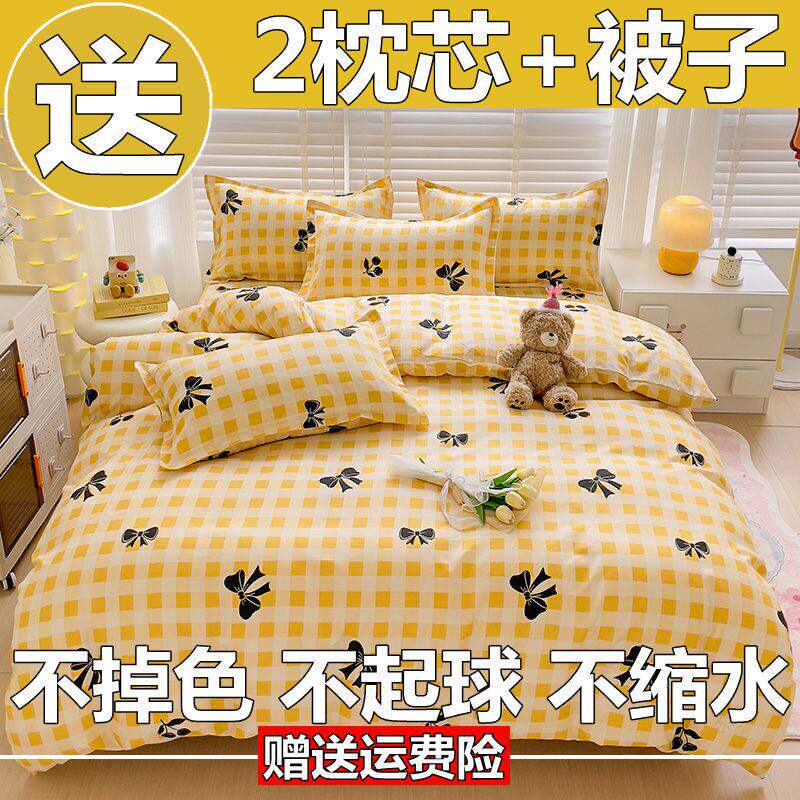简约纯棉四件套100全棉2023新款被套床单学生宿舍床上三件套用品4