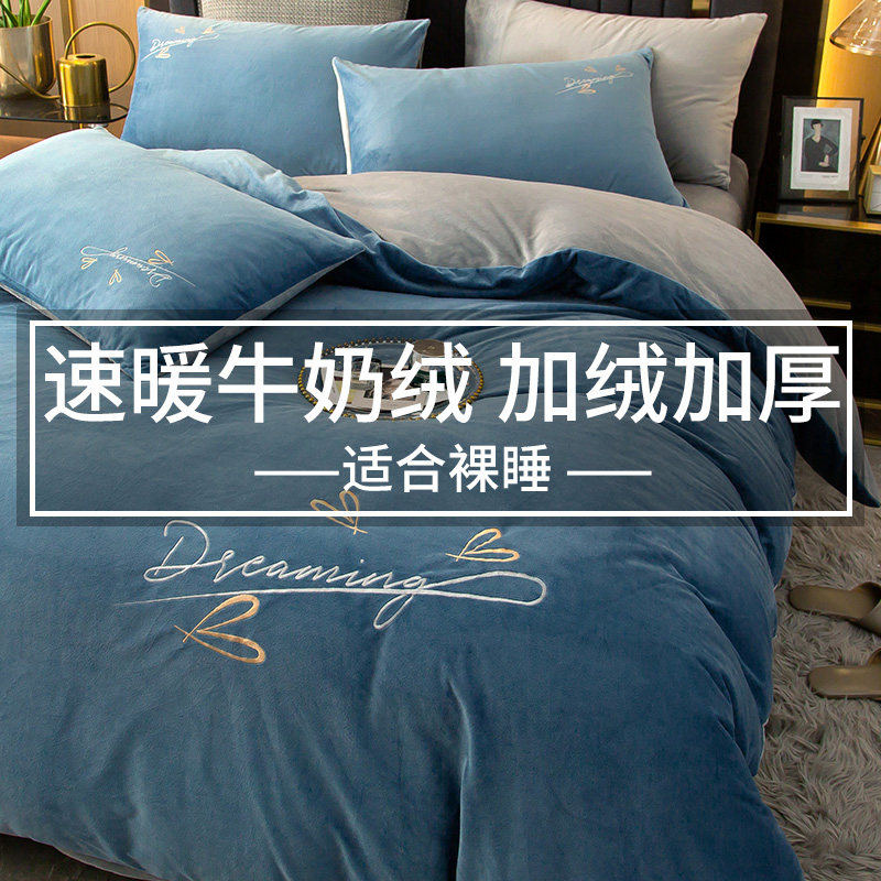 南极人床上牛奶绒四件套床单珊瑚绒秋冬加绒加厚保暖冬季被套高级