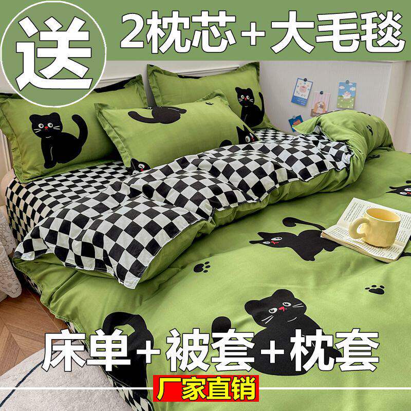 A类全棉床上四件套纯棉2025新款卡通学生宿舍床品床单被罩三件套4