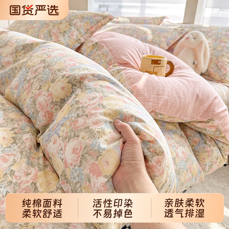 夏季全面纯棉床上四件套2025新款小清新被套罩床单三件套床笠床品
