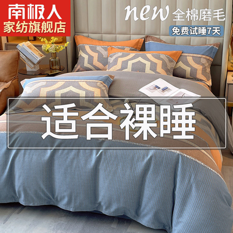 南极人全棉磨毛四件套纯棉床单被套三件套床上用品宿舍单人被罩4
