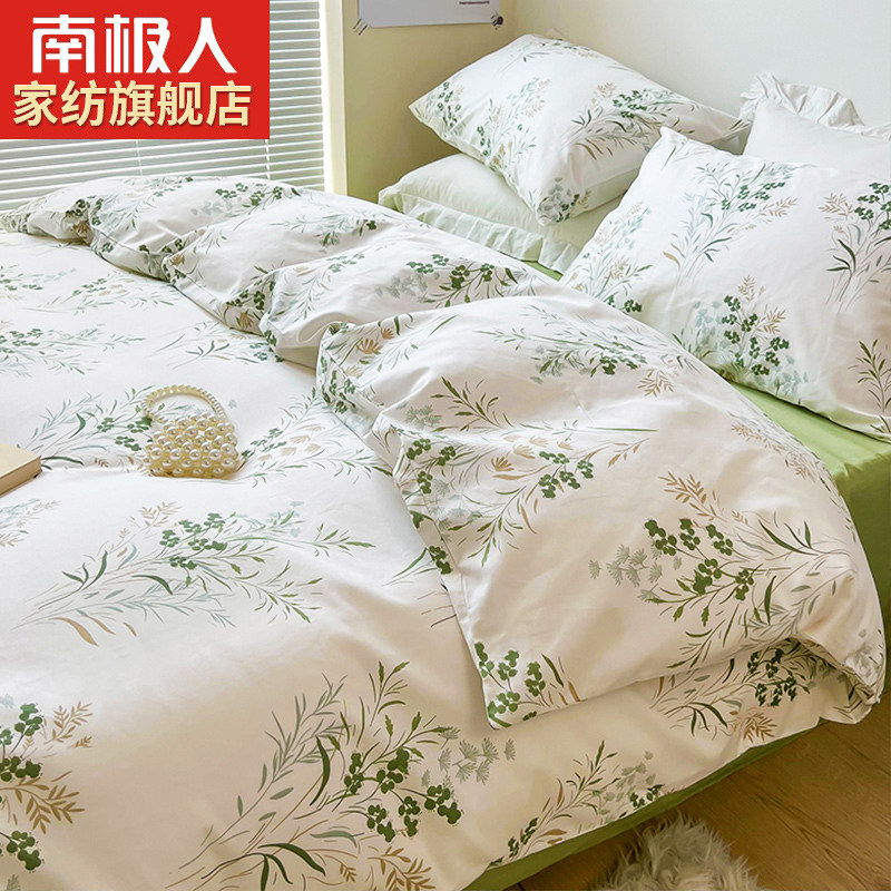 南极人纯棉床上四件套碎花全棉床单被套三件套床品四季通用床笠款