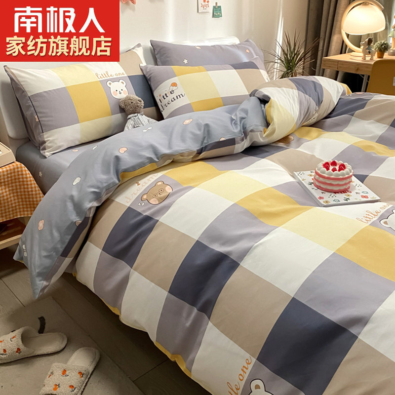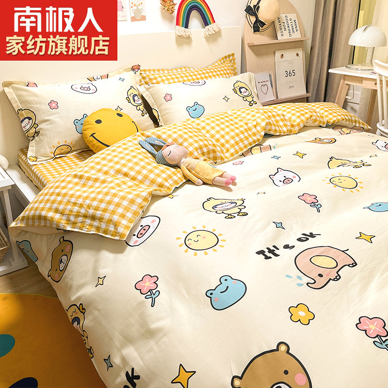 南极人ins纯棉床上四件套100全棉卡通床品床单被套学生宿舍三件套