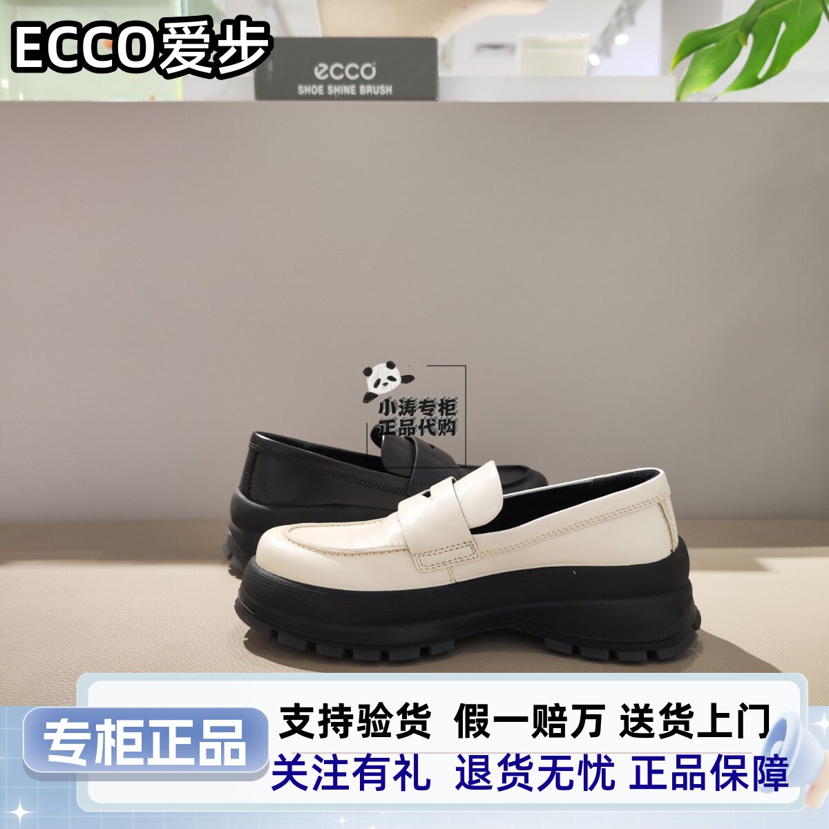 ECCO爱步倪妮同款女鞋英伦风真皮厚底乐福鞋小皮鞋220723 220733