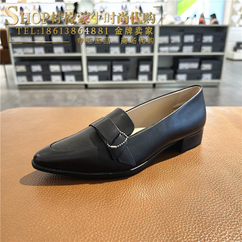 ECCO爱步女鞋乐福鞋新款法式真皮尖头单鞋平底小皮鞋 型塑214283
