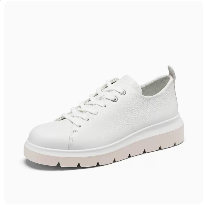 ECCO爱步休闲女鞋软底舒适百搭小白鞋牛皮系带板鞋 柔酷7号430003