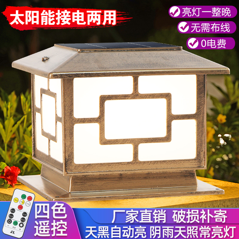 太阳能围墙柱头灯庭院大门柱子门墩墙头顶灯户外防水家用照明接电