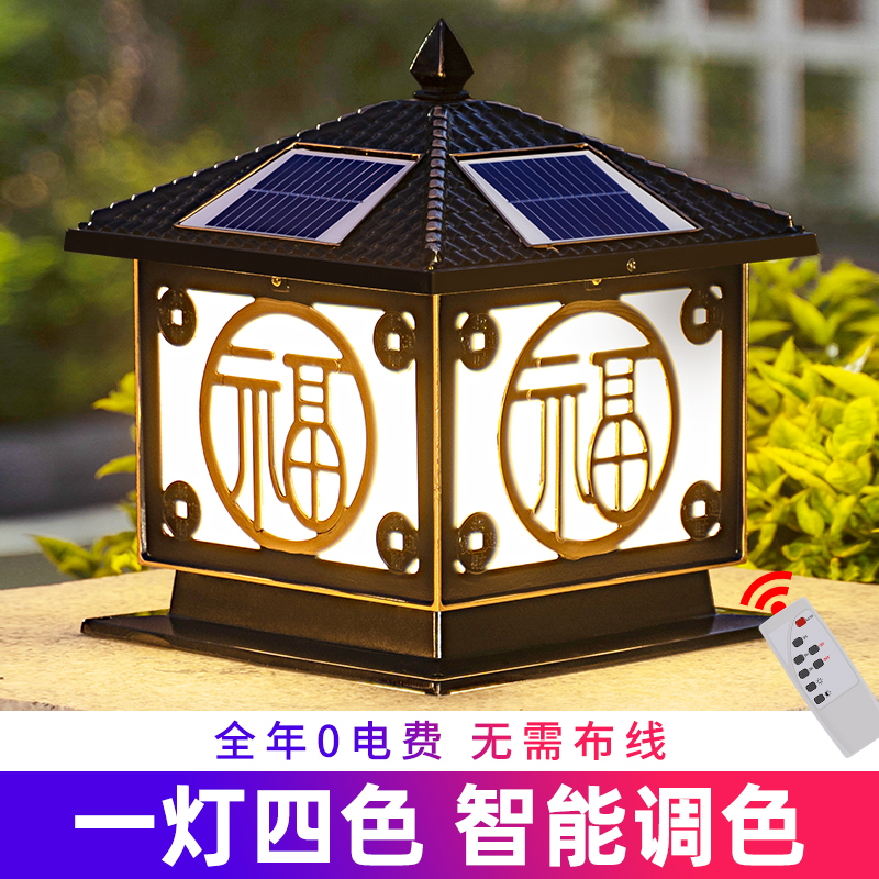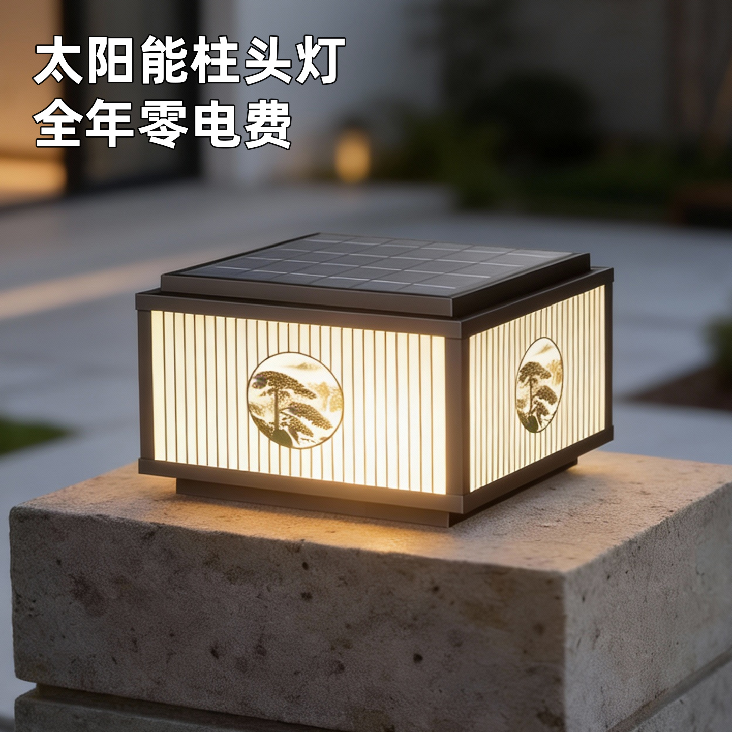 简约新中式太阳能柱头灯户外复古围墙柱子灯墙头灯led防水庭院灯
