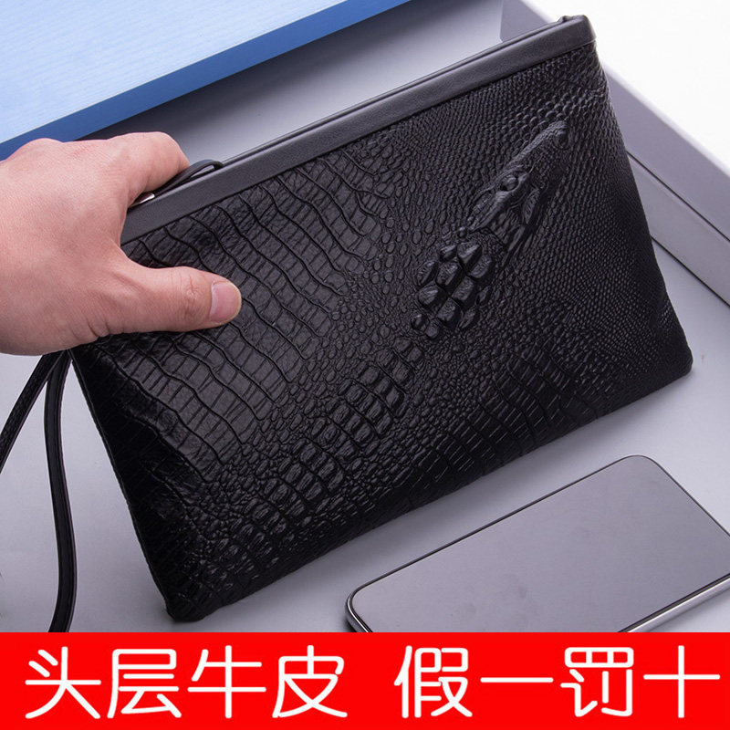 新款手包男真皮手拿包潮大容量翻盖手抓包男士夹包鳄鱼纹牛皮男包