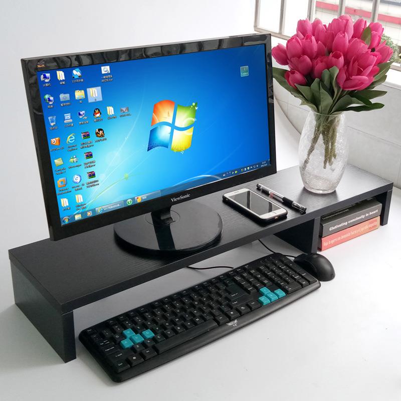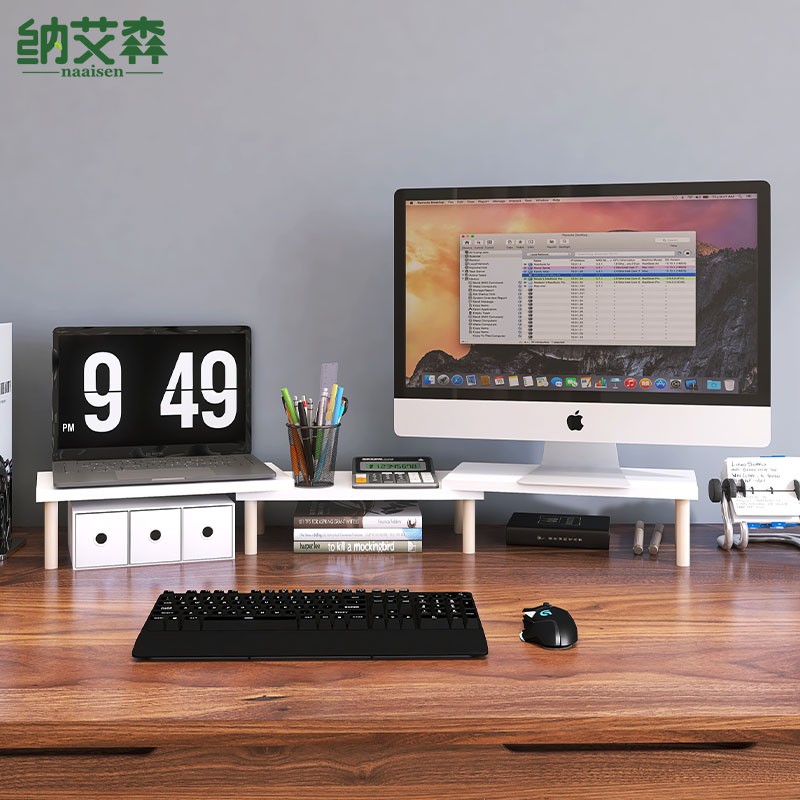双屏电脑显示器增高架办公桌面支架加长实木架子屏幕底座垫高托架