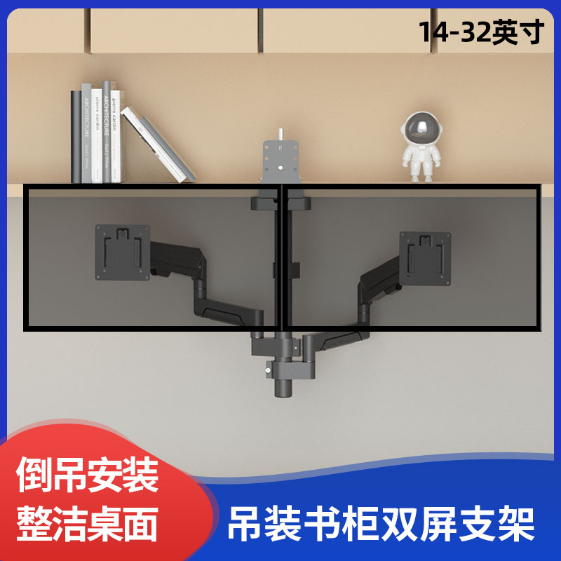 双屏电脑显示器拼接支架适合倒挂宿舍书柜隔板夹持倒装24-32英寸
