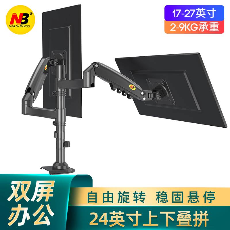 NB双屏电脑显示器支架臂伸缩旋转悬空通用桌面显示屏升降台式底座
