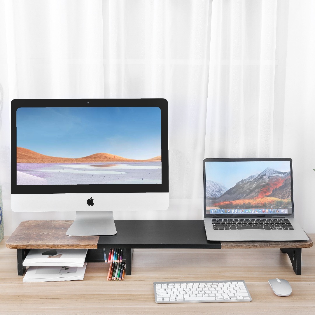新款工业风双拼色双屏电脑显示器增高桌面支架 笔记本电脑收纳架