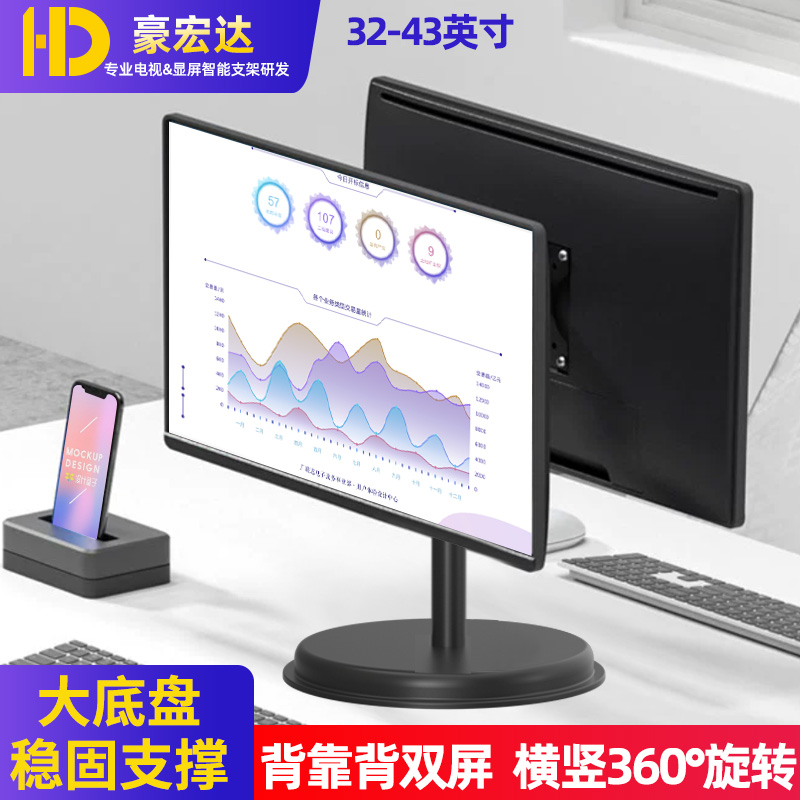 上下双屏电脑显示器支架24/27/32英寸增高底座落地旋转桌面免打孔