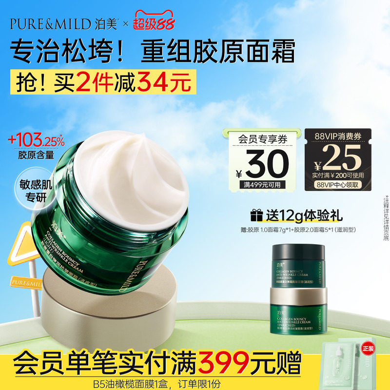 泊美胶原蛋白弹润抗皱面霜女补水保湿提拉紧致淡纹官方旗舰店正品