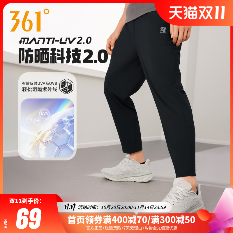 361度男士运动裤2025春季新款冰丝速干防晒运动九分裤薄款裤子男