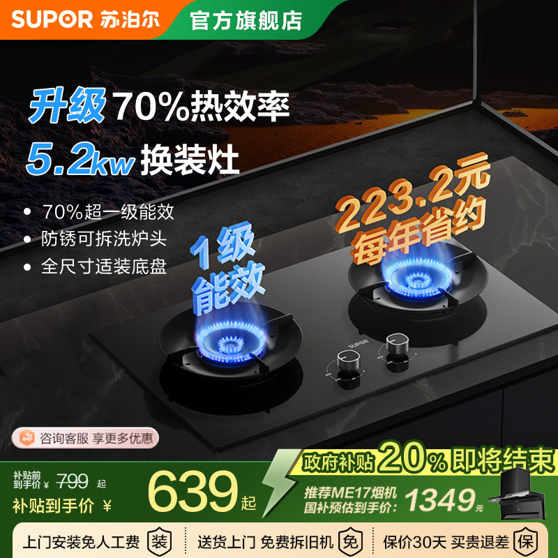 帅康3B803燃气灶家用双灶天然气猛火液化气煤气灶具以旧换新补贴