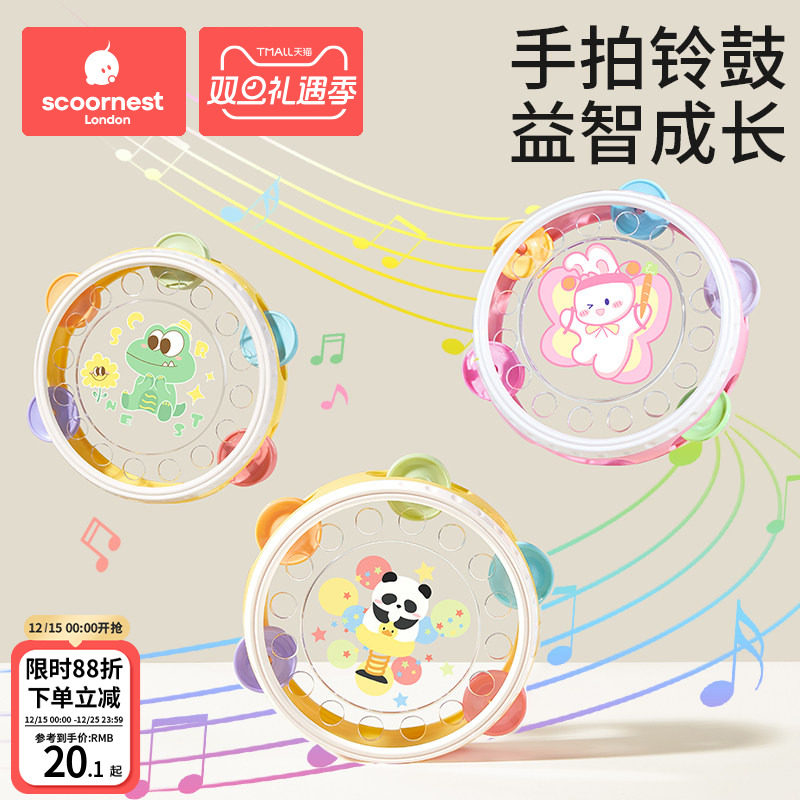 儿童玩具手拍鼓婴儿打击乐器宝宝铃鼓益智早教6个月以上手摇铃1岁